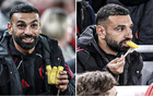 神态轻松,对水晶宫比赛未进入大名单的萨拉赫被拍到在场边吃菠萝
